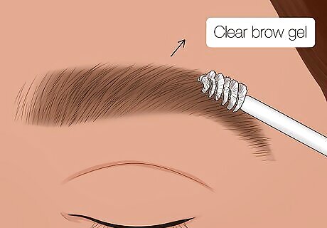 Use eyebrow gel to point your cowlick in the right direction. Grab a clear brow gel of your choice and use it to slick your cowlick in the same direction as the rest of your eyebrow hairs. The gel should hold your unruly eyebrow hair in place for the day without you having to repeatedly adjust or fix it. If you’re in a bind and don’t have brow gel with you, you can use clear mascara or even Vaseline and a spoolie brush to adjust your eyebrows instead.